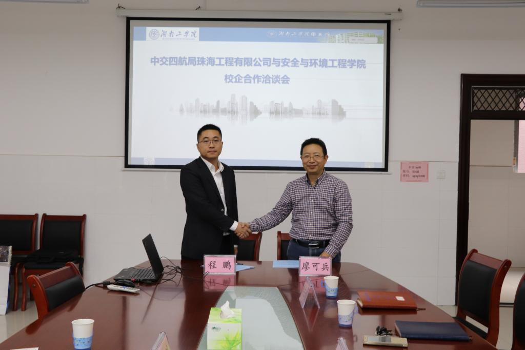 会上,安工学院院长廖可兵对中交四航局珠海工程有限公司人力资源部程鹏经理一行的到来表示热烈欢迎,并简要介绍了学院的基本情况和办学特色,指出中交四航局珠海工程有限公司与我院安全工程、环境工程、物流工程等专业建设契合度高,学院愿意发挥师资队伍、科学研究、人才培养等方面优势,支持公司发展,资源共享、优势互补、合作双赢。