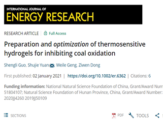 安全与管理工程学院教师郭胜利博士以第一作者身份连发四篇SCI-Top期刊论文。论文《Experimental investigation of erosion effect on microstructure and oxidation characteristics of long-flame coal》和《Inhibitory effect and mechanism of L-ascorbic acid combined with tea polyphenols on coal spontaneous combustion》均在Elsevier旗下期刊《Energy》发表,该期刊是国际能源领域顶级期刊,2021年中科院最新SCI分区显示为一区TOP期刊,影响因子8.857。《Erosion effect on microstructure change and oxidation behavior of long-flame coal under different pH conditions》和《Preparation and optimization of thermosensitive hydrogels for inhibiting coal oxidation》分别被《Fuel》(一区TOP)、《International Journal of Energy Research》(二区TOP)录用发表。论文先后研究了不同酸碱度水溶液及不同浸蚀时长对煤自燃特性的影响,揭示了浸蚀煤氧化活性增强机理,提出了从化学角度减少煤中活性自由基数量及活性官能团产生与物理隔氧吸热两方面出发抑制水浸煤氧化自燃。