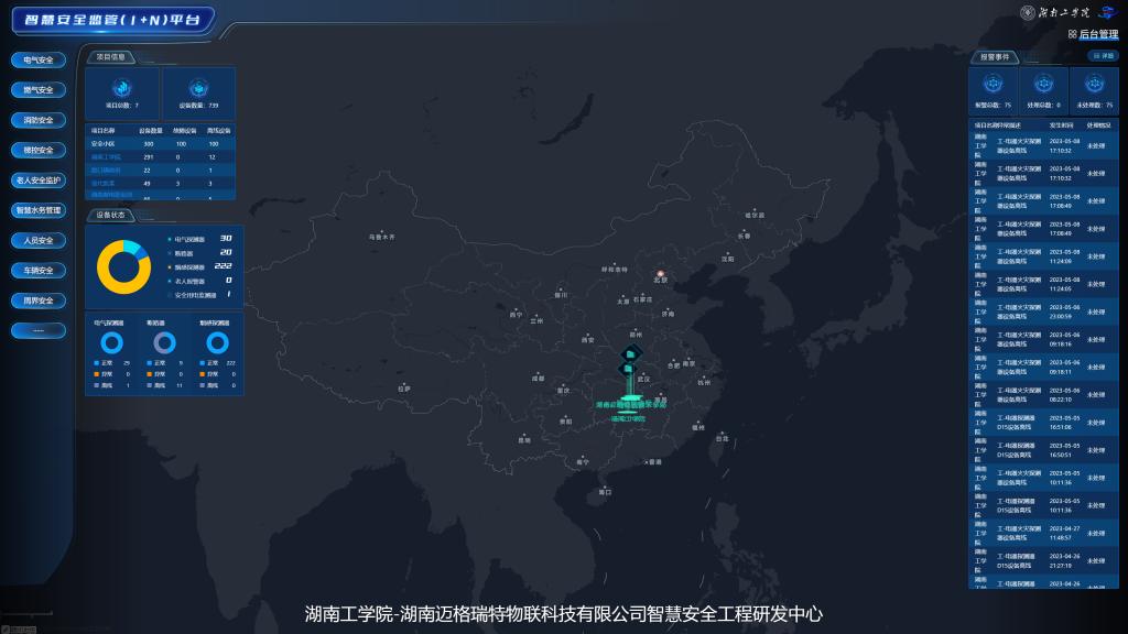 仪式现场,曹执令校长与张利良董事长共同见证了工程研发中心第一款面向生活与生产安全的1+N”智慧安全平台运行启动重要时刻,该产品历时了18个月研发调试,校企与核心研发人员共同拥有相应知识产权;随后,在技术人员远程操控下,湖南迈格瑞特物联科技有限公司长沙3个在运项目与英国上市公司官网365“电气、燃气与烟感”智慧安全示范工程项目一次性成功接入工程研发中心开发的“1+N”智慧安全平台,标志着湖南迈格瑞特物联科技有限公司智慧安全数据处理中心顺利落地英国上市公司官网365,也标志工程研发中心开发智慧安全产品成功实现市场化;研发中心主任胡鸿详细介绍了该产品市场定位、功能参数、技术优势、市场前景与产品后续发展规划等;产品技术负责人贺卫博士现场演示了平台核心功能,并分享了该产品开发历程及其成长故事;该平台目前与长沙、衡阳等湖南地区的居民小区、高校、医院与监狱等10多家使用单位达成合作意向。