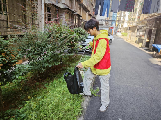仪式结束后,全体学生代表指导老师的带领下,对前进里社区进行了捡拾垃圾、清洁地面等劳动实践活动/胡君捷 /蒋兆卫)