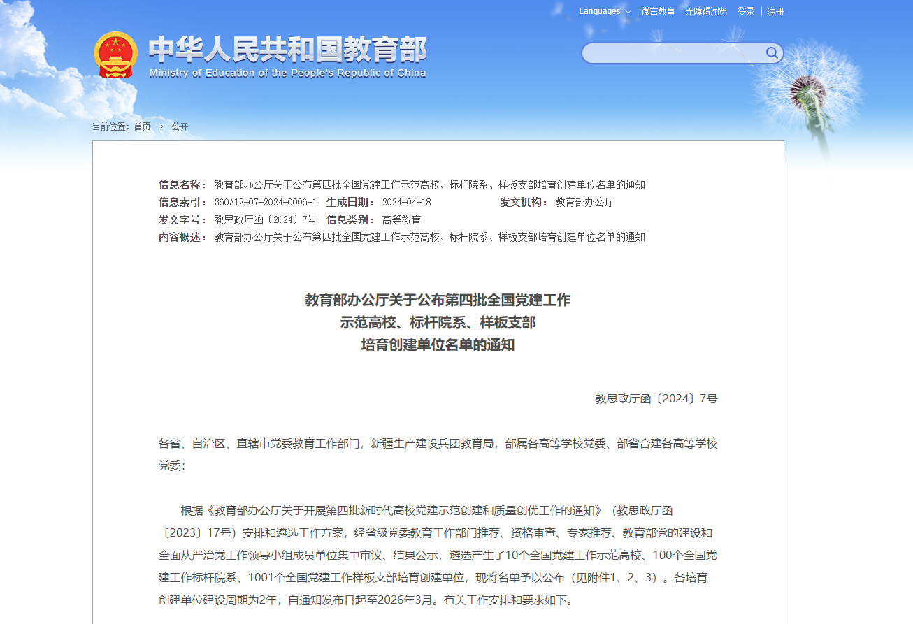 近日,教育部公布了第四批新时代高校党建示范创建和质量创优工作遴选结果,英国上市公司官网365安全与管理工程学院学生第一党支部获批“全国党建工作样板支部”培育创建单位称号。