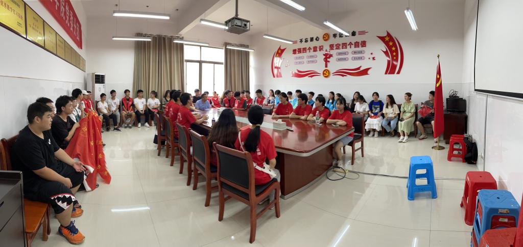黄宏格带领参加实践活动的老师和同学学习了刘龙昌副校长在学校2021年大学生暑期“三下乡”社会实践活动启动仪式上的讲话精神,要求大家把刘校长提出的四点希望切实落实到“三下乡”社会实践中。