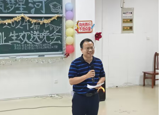 5月28日晚,安全与管理工程学院在5601室举行2024届毕业生欢送晚会,学院党委书记陈健、党委副书记周丹、全体辅导员、毕业班班主任、2024届在校毕业生代表近180余人参加了本次晚会。理学院党委副书记傅娜应邀出席。