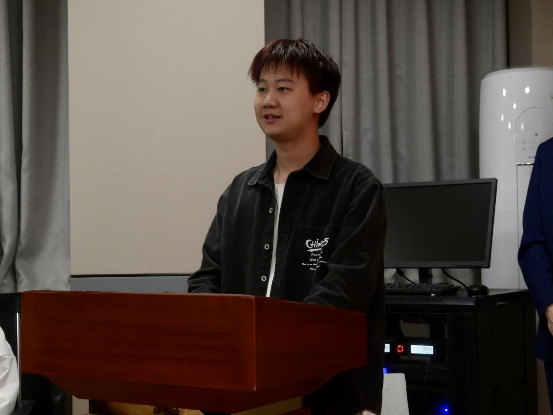 新团员代表黄奕鸣在发言中指出:作为新一届共青团员的我们,也作为青年的我们,应该承担时代使命,不断努力学习提高自身,书写我们这一代人的壮丽华章。