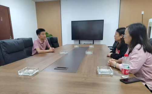 在长沙五犇新材料科技有限公司,伦英慧一行和公司总经理陈如意座谈。陈如意介绍了公司发展历程和产品的应用领域,双方就校企合作人才培养、科研项目合作、学生实习和就业等进行了深入交流,双方就学生实习和就业达成一致。