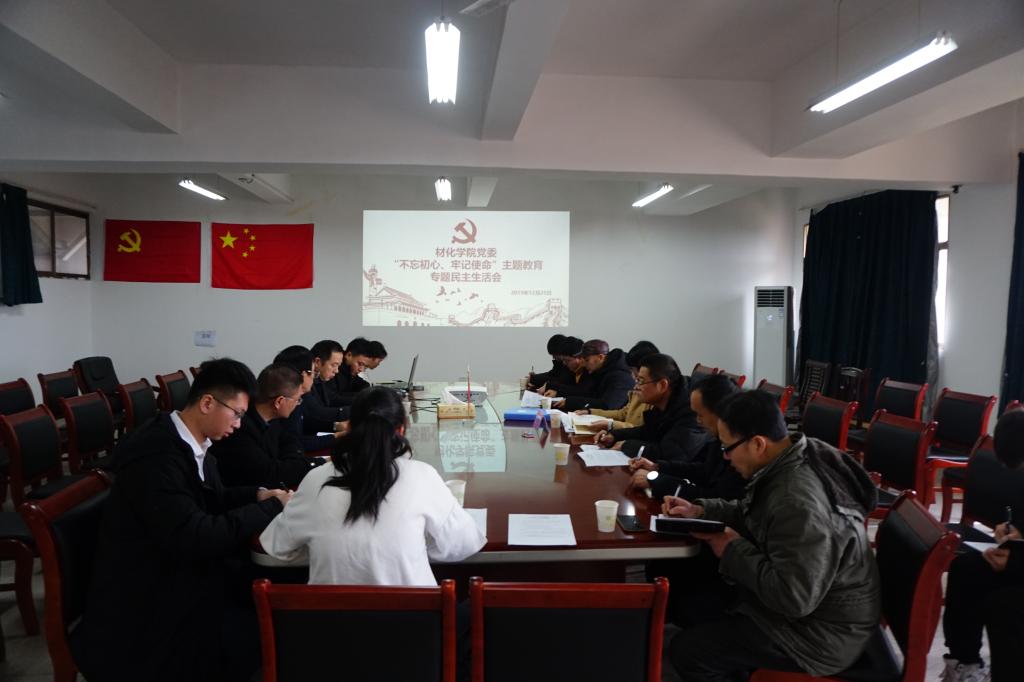 刘湘欣代表材化学院党委通报了此次专题民主生活会的会前准备情况和上年度民主生活会问题落实整改情况。崔晓利对开好会议提出了具体要求:一是要高度重视,紧扣主题;二是要注重质量,以自我剖析材料为核心,认真开展批评与自我批评。随后,刘湘欣代表班子作检视剖析发言,按照习近平总书记关于“四个对照”、“四个找一找”的要求深度剖析了问题产生的原因,并提出了今后的努力方向和改进措施。随后材化学院党委班子成员依次作自我剖析,其他党委委员逐一对其提出批评意见。