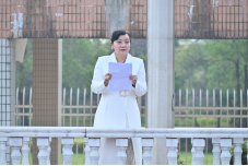 礼毕,学生代表张美胜发言。他说青年兴则国家兴、青年强则国家强,作为新时代青年的我们,生逢盛世、肩负重任,应当昂首阔步、奋勇前行,追寻信仰之光,在新时代新征程中留下青春奋斗的鲜明印记,以实际行动迎接党的二十大胜利召开。