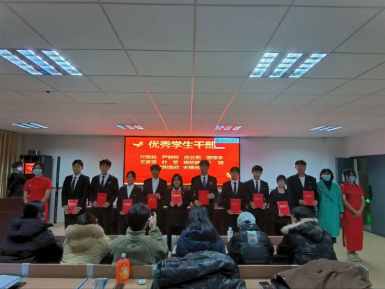 主席台领导为第十五届团委·学生会和学工办助理团队部门负责人颁发聘书。