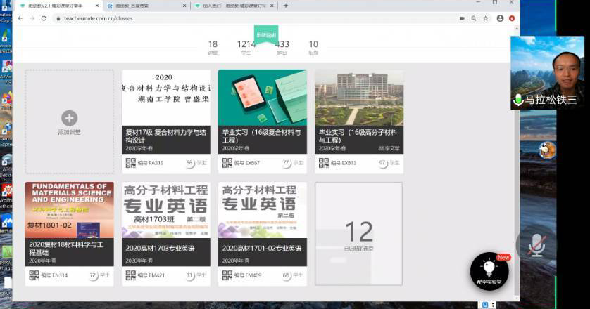针对疫情期间学校对理论课程全面在线教学的要求,2020年5月12日,高分子材料教研室全体教师使用腾讯会议召开在线教学经验交流会。会议由曾盛渠主持,材化学院罗建新副院长参会指导。