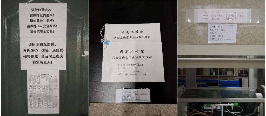 为了使学生在返校后的有限时间内,有序、高效的开展毕业实验工作,学院制订了毕业实验工作实施流程并建立了监控体系。采取严格的实验室进出登记制度、固定实验位置保持安全距离、张贴安全提示性标语、开展实验室安全卫生检查等措施。指导老师在利用校友邦、微信、QQ等平台进行线上指导之外,还甚至利用周末和晚上进行现场指导和监督,确保毕业论文按期高质量完成。