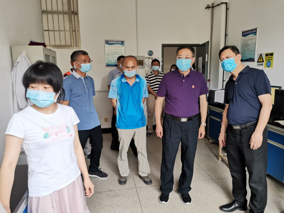 5月28日上午,学校党委书记谢国保、校长罗建华、副校长刘俊学带领教务处、学生处等部门负责人一行来到材化学院,逐一走访了我院各实验室,并与现场师生亲切交谈。仔细询问毕业论文实验工作开展情况,要求师生们在做好常态化疫情防控的同时,要强化安全教育,始终牢记“安全第一”,确保毕业论文实验工作的顺利进行;勉励同学们珍惜毕业季中美好的校园时光,科学统筹好时间和精力,按时按质有序完成毕业论文工作。