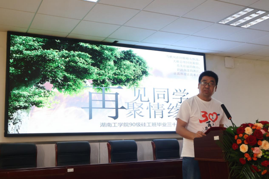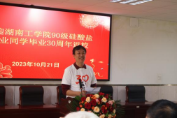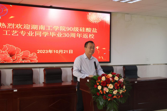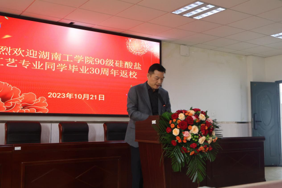 曹执令致辞,代表学校90级硅酸盐工艺校友们表示热烈的欢迎,向校友们一直以来对母校建设发展的关心和支持表示衷心的感谢。