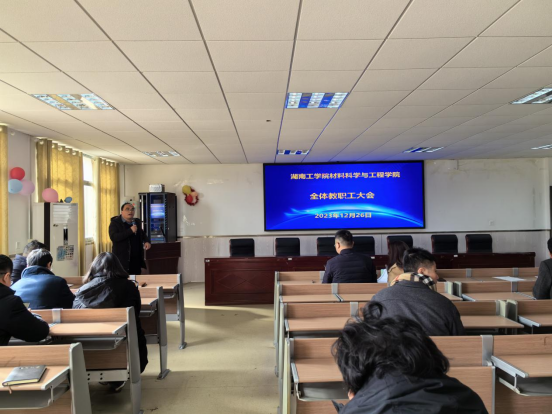 12月26日下午,材料科学与工程学院在1301报告厅召开教职工大会暨2023年度工作总结会。院党委书记刘赢时,院长罗建新,新型建筑研究院院长娄晓明,副书记金燕,副院长吴智以及学院全体教职工共同出席,会议由副院长黄建平主持。