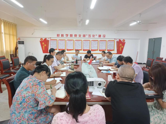 为了加强材料学院党的建设和抓好学院意识形态领域的各项工作,2022年6月23日下午,材料学院党委理论学习中心组在材化楼1401会议室召开了本年度第五次中心组学习扩大会。本次会议的中心内容:全面落实从严治党方针,加强学院意识形态工作风险防控,推动学院各项工作。学院党委成员、院领导、三办主任、党支部书记及各教研室主任参加了学习会,会议由党委书记刘湘欣主持。