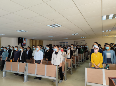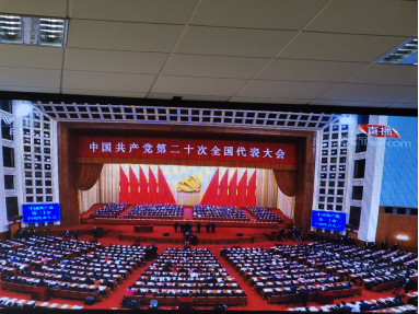 师生观看中国共产党第二十次全国代表大会开幕会师生起立 奏唱国歌