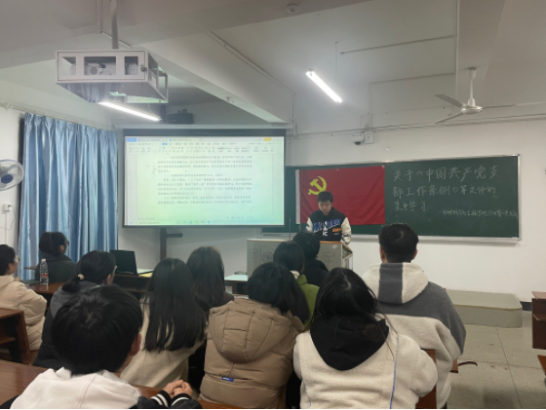 2023年2月24日晚19:00,为全面提升党支部的组织力,材料科学与工程学院学生第二党支部全体党员在材化楼1504开展关于学习《中国共产党支部工作条例》等文件的集中学习,支部全体党员按时参加。