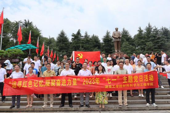 为贯彻落实党的二十大精神,庆祝中国共产党成立102周年,引导广大教师党员不忘革命先辈的牺牲奉献,更加清醒地认识到肩负的责任和使命,更加坚定在岗位上履职尽责的信心和决心,2023年71日,材料科学与工程学院党委组织全院教师党员前往毛泽东故里韶山和刘少奇故居花明楼开展“追寻红色记忆,凝聚奋进力量”主题党日活动。