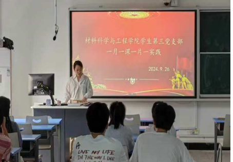 为提升党员责任意识,强化党组织的向心力和号召力9月26日上午,材料科学与工程学院学生第三党支部组织全体党员在1411开展“一月一课一片一实践”主题党日活动,支部书记黄依卓主持会议