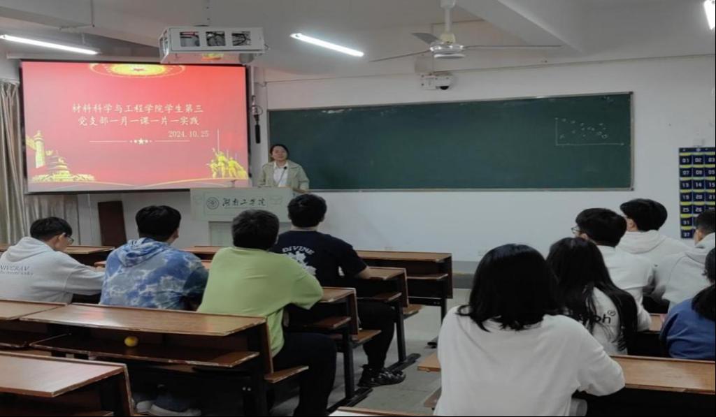 1025日,材料科学与工程学院学生第三党支部于材化楼1514开展“一月一课一片一实践”主题党日活动,支部全体党员参加,支部书记黄依卓主持会议。
