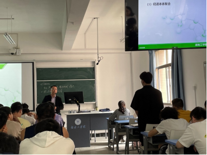 在本次示范课中,罗建新教授生动地讲授了高分子化学中的聚合方法。他深入浅出地解释了聚合方法和体系分类,分析了不同聚合优缺点和实际案例,使同学们对聚合方法有了更深刻的理解。