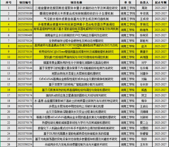 【科研成果】材料科学与工程学院喜获6项2025年度湖南省自然科学基金项目立项