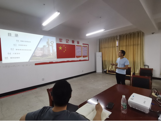 混泥土泵密封件、压裂泵密封、静电喷涂自清洁涂层、人造玉石和隔热硅橡胶等课题的申报及实验过程。熊鑫博士以可设计型多孔材料制备及性能研究》为题,分别讲解了颗粒堆积型多孔透气材料和基于固体废弃物轻质高强陶粒两部分内容。