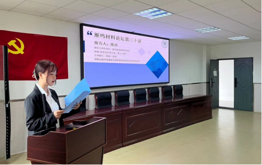 2023年5月9日下午,雁鸣材料论坛学术报告会第30、31讲在材化楼1301学术报告厅举行。本次报告会的主讲人分别是新型建筑材料研究院的陈洋博士和材料学院侯伟博士,报告会由材物2102班罗文静同学主持,学院全体中青年教师及相关专业本科生参加了本次学术报告会。