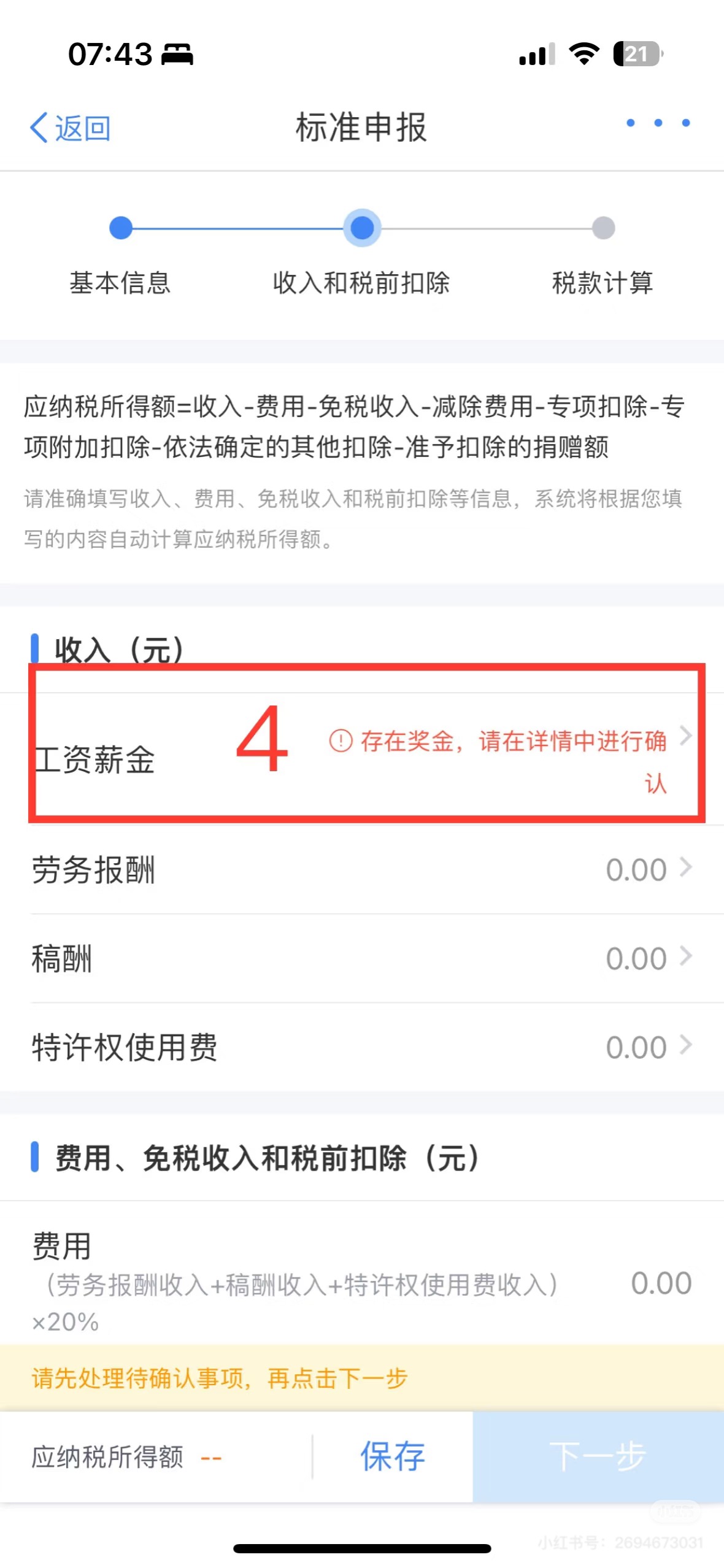 5)核对收入和专项附加扣除扣除,若存在奖金,请选择【全年一次性资金】计税方式。