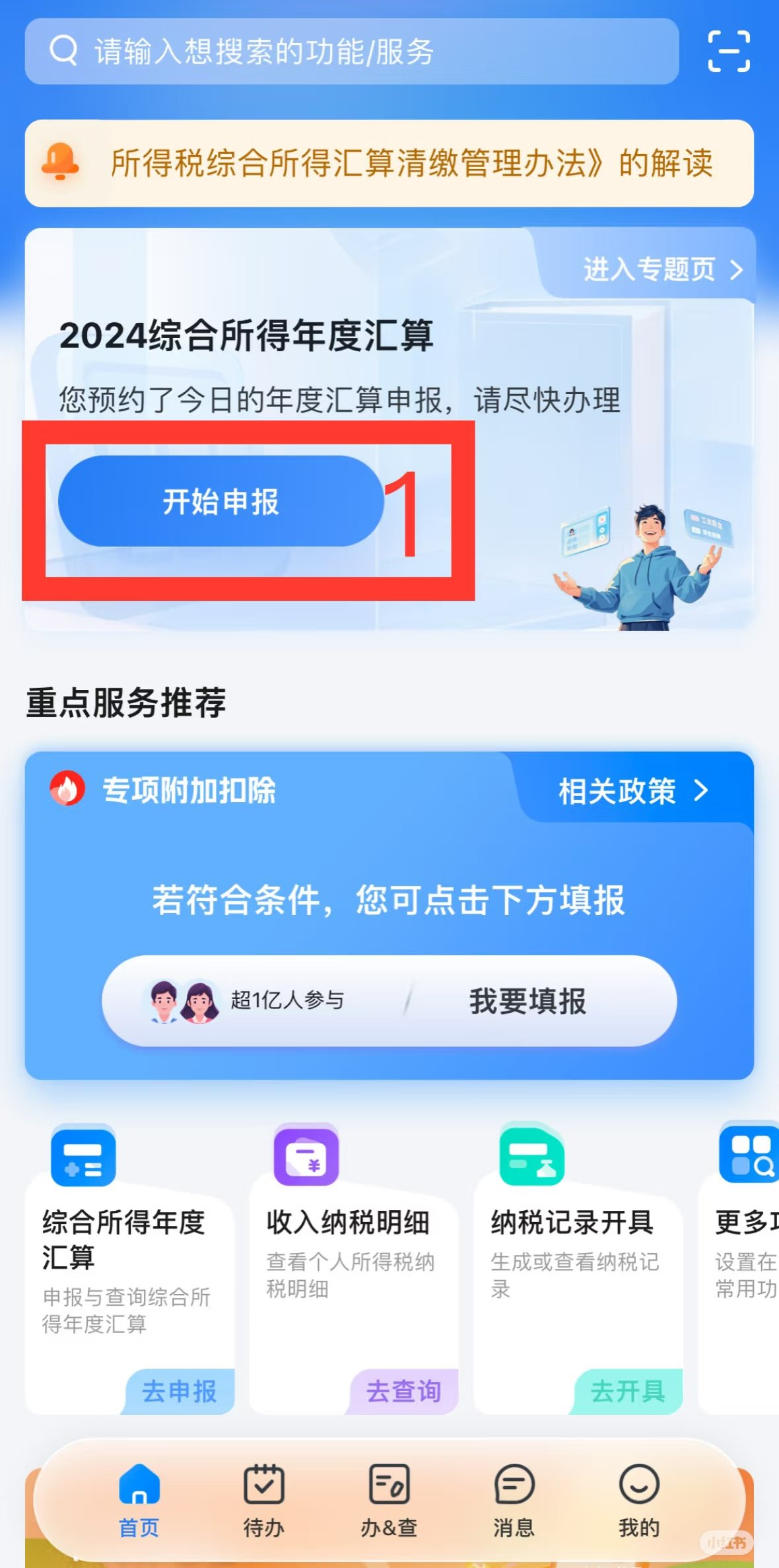 1)登录个税APP后,点击进入【20XX综合所得年度汇算】。