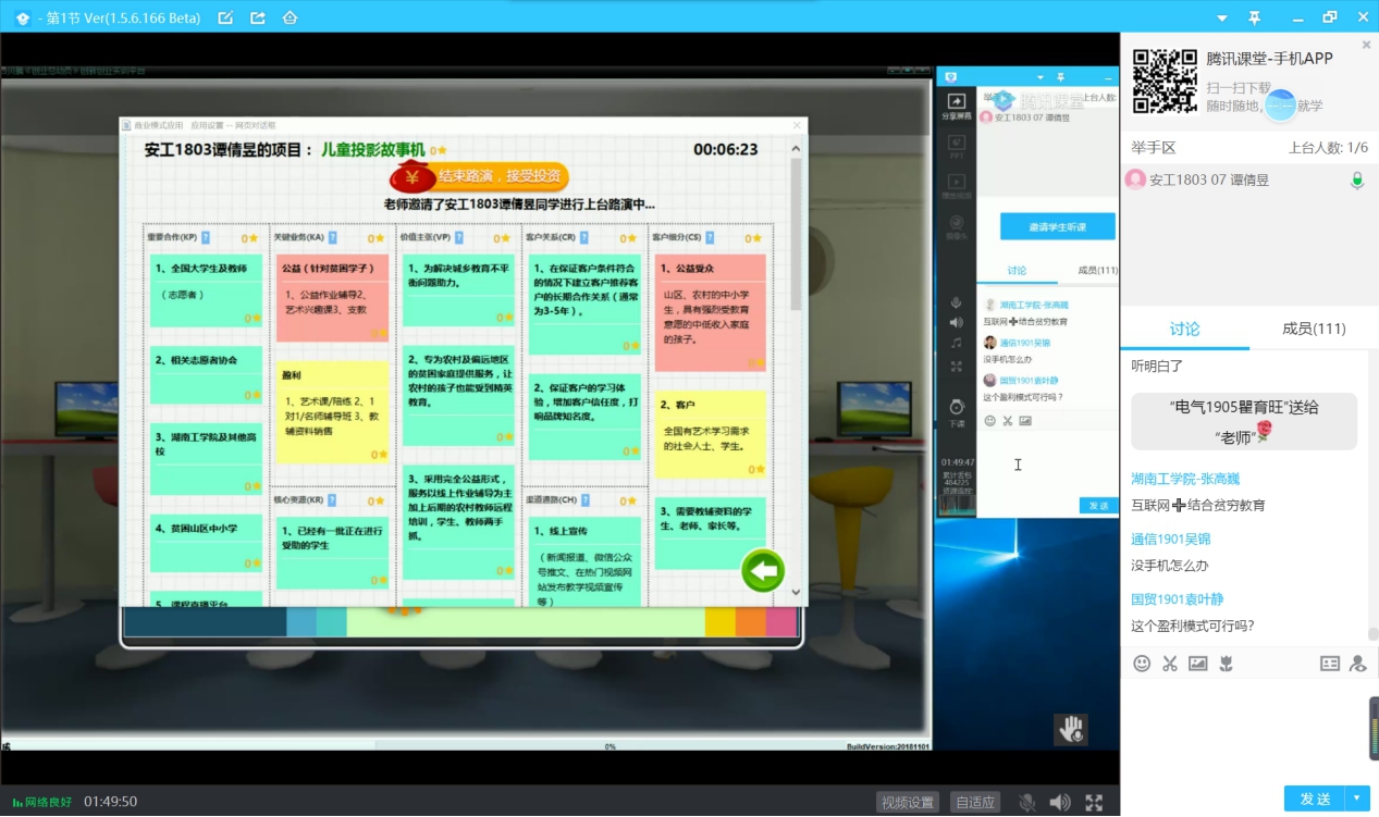 培训主要分为商业模式设计理论讲解和商业画布分享两个部分。肖总监深入浅出地介绍了相关知识,引导学生运用商业画布对项目进行优化。在画布分享过程中,肖总监还针对学生的创新创业项目进行了点评与实时互动。在点评过程中,各团队在培训中不断调整,理顺创业发展思路,优化团队架构,促进了各项目之间的学习交流,激发了同学们对创新创业知识的学习积极性,为项目后续发展打下了良好的基础。