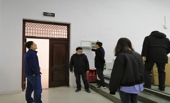 1月9日上午,我院院长张文玉带领学院安全工作小组成员对学校大学生创新创业孵化基地展开了消防安全检查。检查组一行仔细查看了基地消防安全设施以及实验室的设备安全情况。张文玉强调,寒假马上来临,注意按要求妥善整理、保管实验室仪器设备;放假期间除了工作需要和必须通电的实验室外,不再使用的实验室要注意关闭电源、水源和门窗,注意防火、防盗,并贴好封条。(创新创业就业学院)