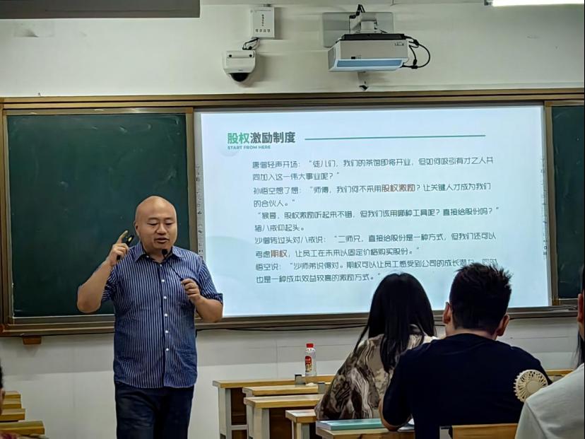 在三个小时的讲座中,何驰老师首先从唐僧师徒拟开“西游茶馆”的故事着手,详细介绍了企业的股权设计与激励机制、企业融资手段与资本运作实务。