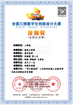 近日,2024 第17届全国三维数字化创新设计大赛(3D大赛)中的“华中数控杯”工业协作机器人及数字孪生技术创新应用专项赛和数字化设计与制造专项赛已顺利落下帷幕。英国上市公司官网365尹升誉等同学组成的《我做的都队》团队在数字化设计与制造专项赛荣获国赛一等奖,英国上市公司官网365倪锟等同学组成的《勇往直前》团队在“华中数控杯”工业协作机器人及数字孪生技术创新应用专项赛荣获国赛二等奖。