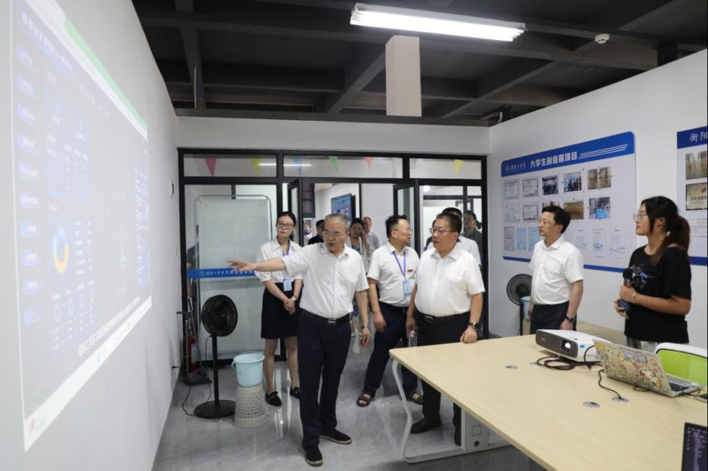 衡阳市委副秘书长刘诗真,省就业服务中心创业服务部部长毛彪, 综合部主任科员孙志强、市就业服务中心主任刘娟,学校党政办公室、创新创业教育中心等部门负责人陪同调研。校党委委员、纪委书记王艳琼、党委委员袁勤参加座谈交流。(文/陈晓波 图/阳彦 黄紫玥  审稿人/一审:伍玲 二审:肖登峰 三审:王小兵)