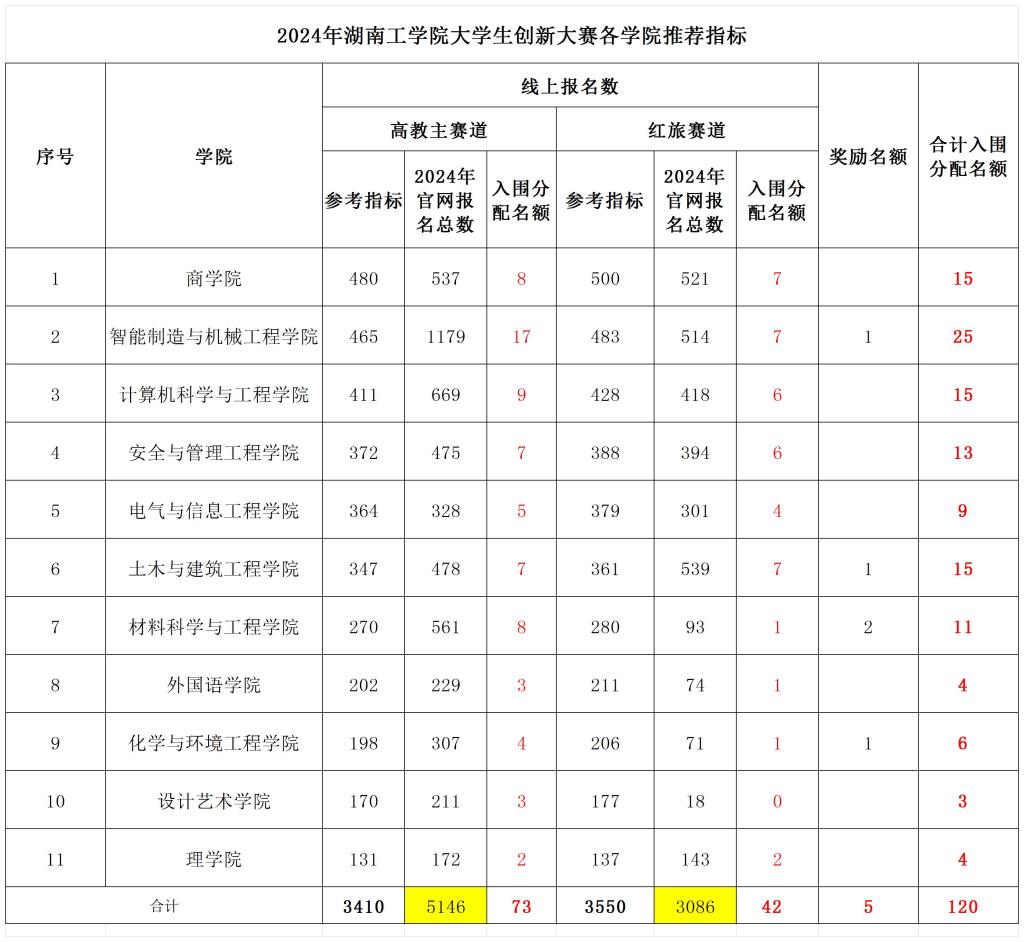 (1)主赛道推荐数=学院主赛道报名总数×1.4%,