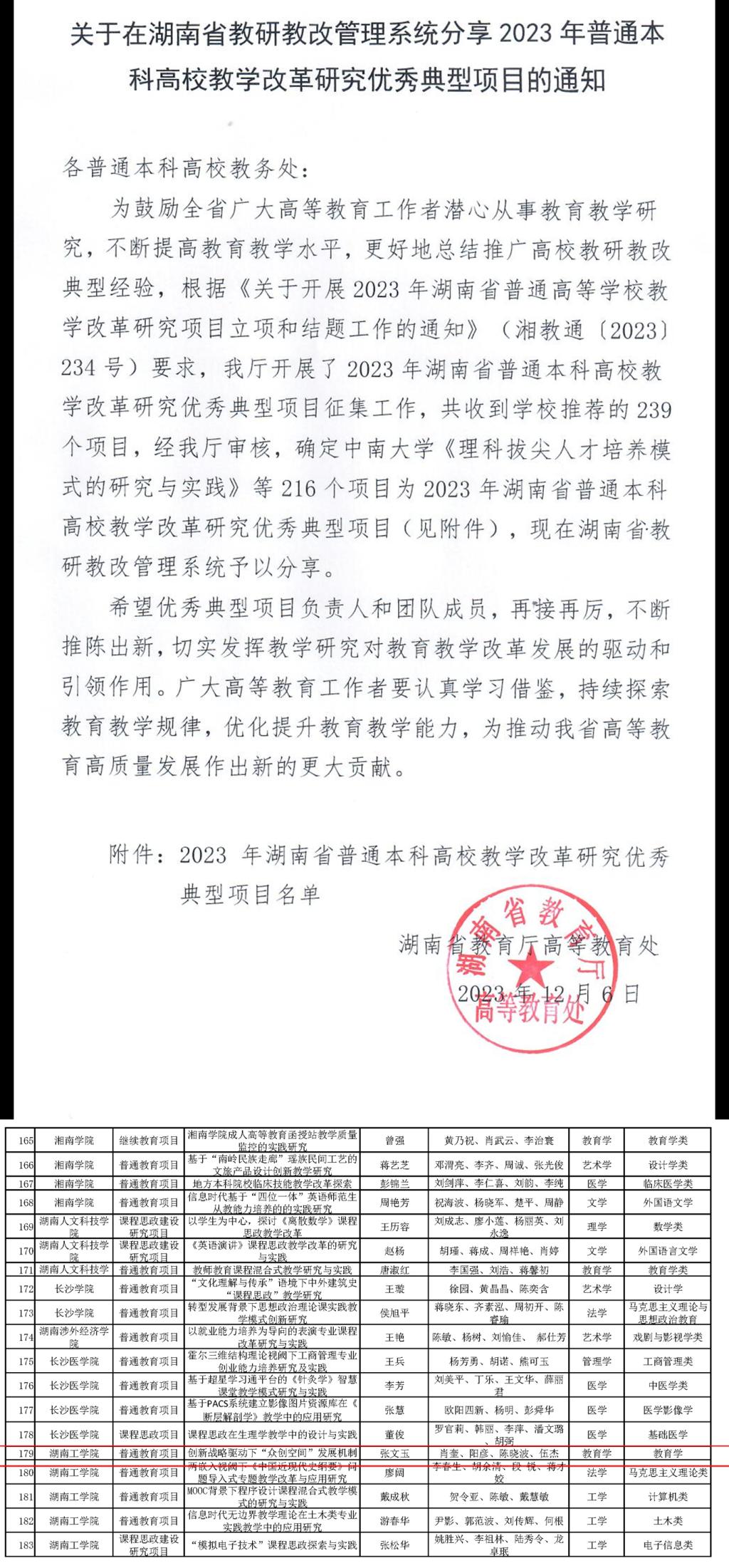 关于在湖南省教研教改管理系统分享2023 年普通本科高校教学改革研究优秀典型项目的通知