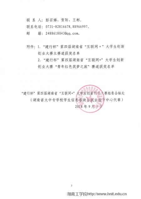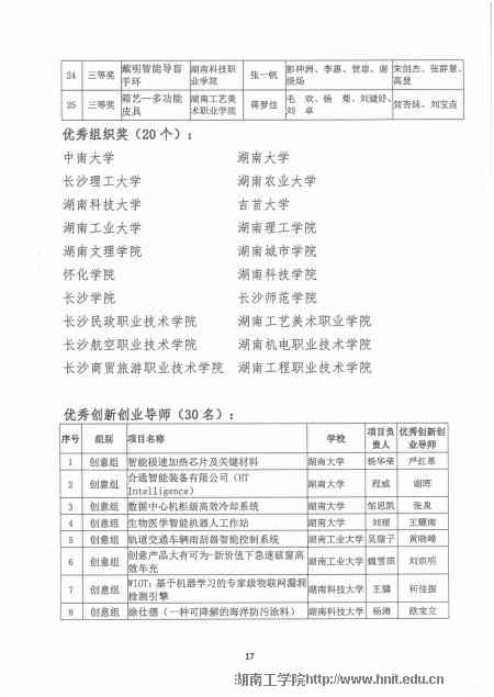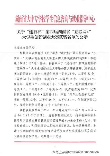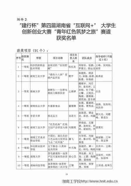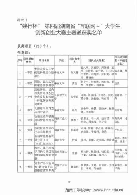 2018年“建行杯”湖南省第四届“互联网+”大学生创新创业大赛获奖公示