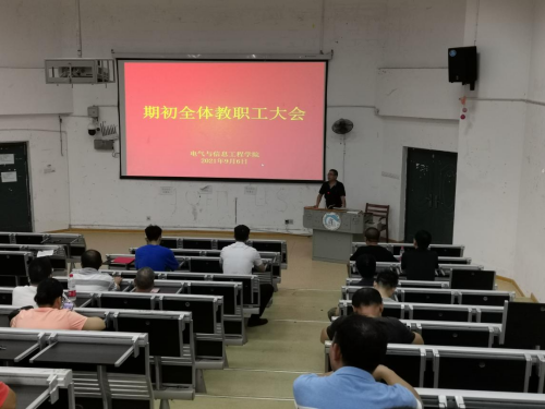 2021年9月6日下午,电气与信息工程学院召开了2021-2022-1学期期初全体教职工大会暨师德师风培训会。会议由李祖林院长主持。