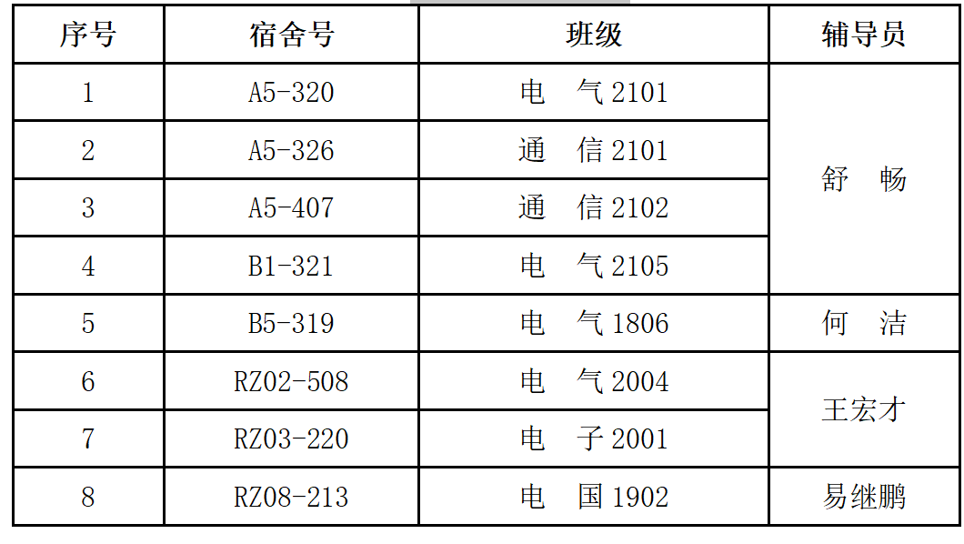 电气与信息工程学院 文明宿舍建设活动第十二周检查结果