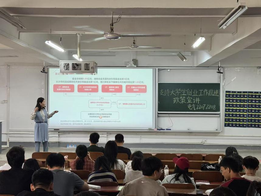 同时,辅导员重点介绍了“金种子杯”大学生创业大赛的相关情况。大赛以“青春‘湘’聚,竞创未来”为主题,鼓励大家来湖南创新创业,参赛项目可获得最高10万元奖金,金奖项目还能直接进入湖南省大学生创业投资基金尽调流程,最高可获100万元投资。此外,获奖项目落地湖南后,还可享受税收减免等优惠政策。