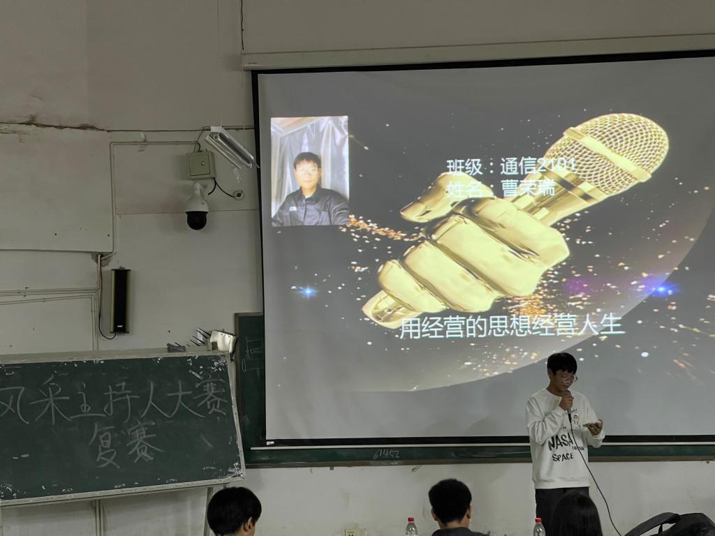 20201126日晚七点,由电气与信息工程学院团委学生会社团部主办的主持人大赛复赛于3408圆满举行,由社团部部长刘硕、副部长吴银鑫担任评委