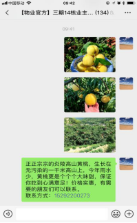 8月10日上午,我首先调查的是株洲炎陵特产——黄桃的销售情况。今年因为受到疫情的冲击,外出旅游的游客大幅度减少,因此导致线下销售情况不容乐观。但有一部分的果民加入了线上的销售,通过淘宝,拼多多等APP以及自己的微商对产品进行销售,所以黄桃销售收到的冲击相对较好。为了能够为他们提供到更多的买家,更多的销售途径,再向他们了解情况后,我与小区物业商量,最终将销售的宣传推广到了小区的业主群中,同时也在朋友圈等平台转发传播,为推动复工复产尽到自己的绵薄之力。