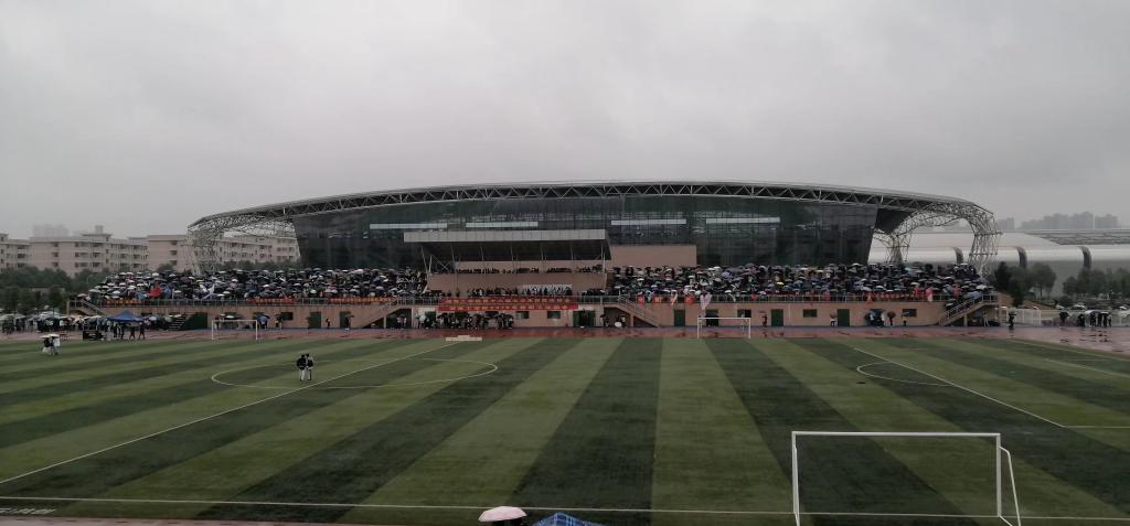 今日天空中下起了雨,可这却抵挡不了运动会的火热。拉拉队的同学们早早的来到了运动场上,比赛的同学们蓄势待发,终点的红布缓缓落下,是他们成功的最好证明。