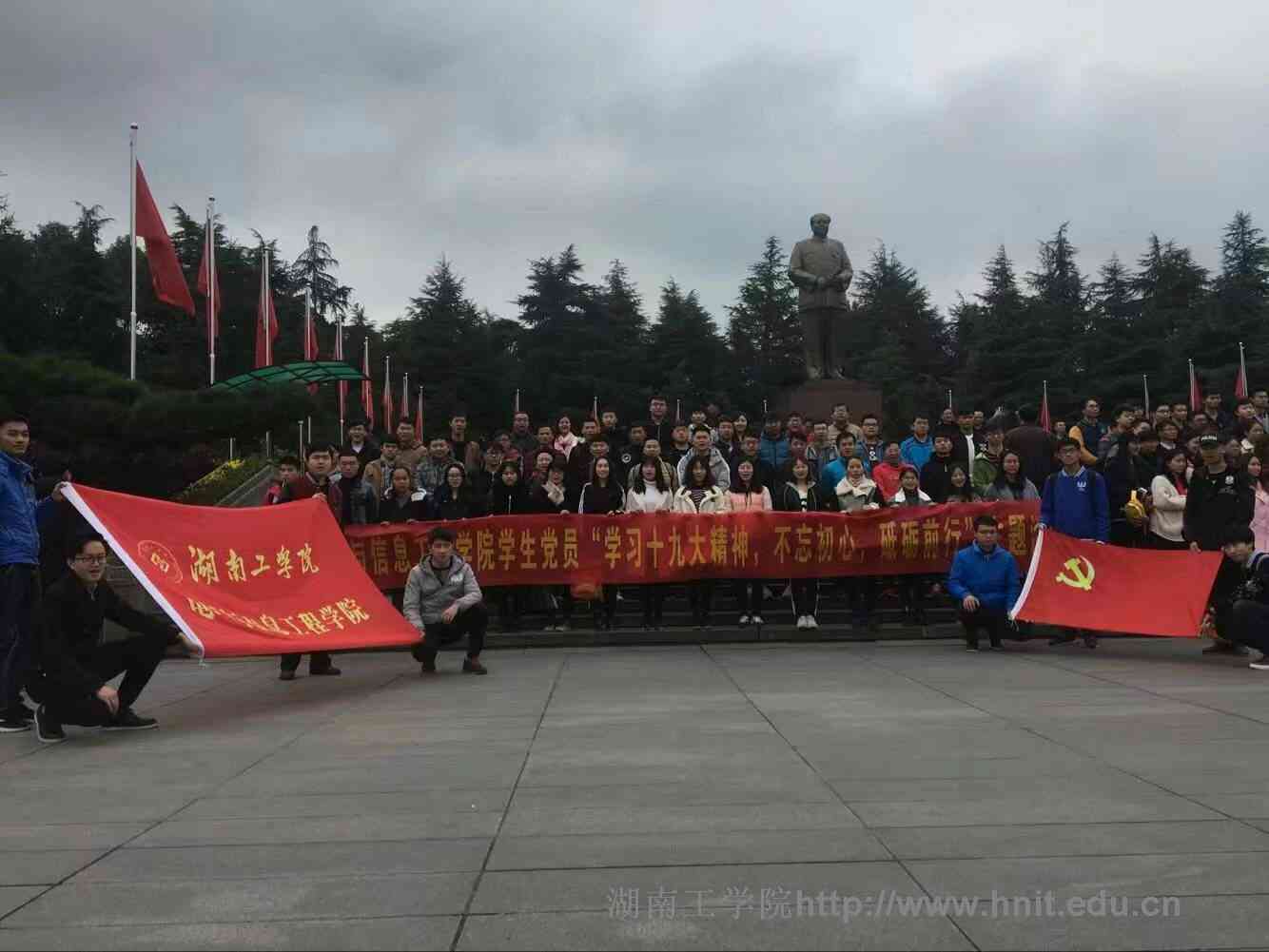 电气与信息工程学院于12月3日在韶山开展了“不忘初心,砥砺前行,学习党的十九大精神”主题党日活动。党政办公室主任严亚周、辅导员何洁老师以及各级学生党员参加了此次活动。