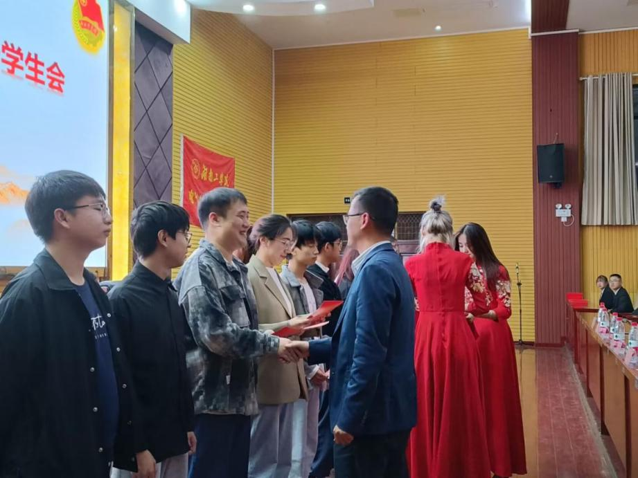 第十四届团委学生会团委副书记李子健向大会作报告,总结回顾了过去一年的团学工作,希望新一届团委学生会将学院团结、友爱的氛围继续传承下去。接着颁发第十四届团委学生会“十佳奉献奖”。阳柯宣读第十五届团委学生会任命文件,由现场领导、老师为主席团及各部门颁发聘书,第十四届团委学生会与第十五届团委学生会进行交接仪式。