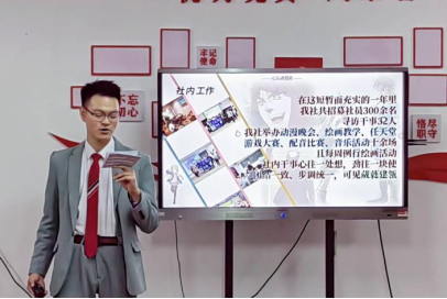评选活动上,各优秀社团进行了风采展示。涵盖思想政治、学术科技、志愿公益、美育发展等四大类型社团,各社团通过PPT陈述、视频播放、实物展示、现场表演等方式向评委老师及现场观众做了全面展示和汇报,充分彰显了社团的靓丽风采与青春活力。