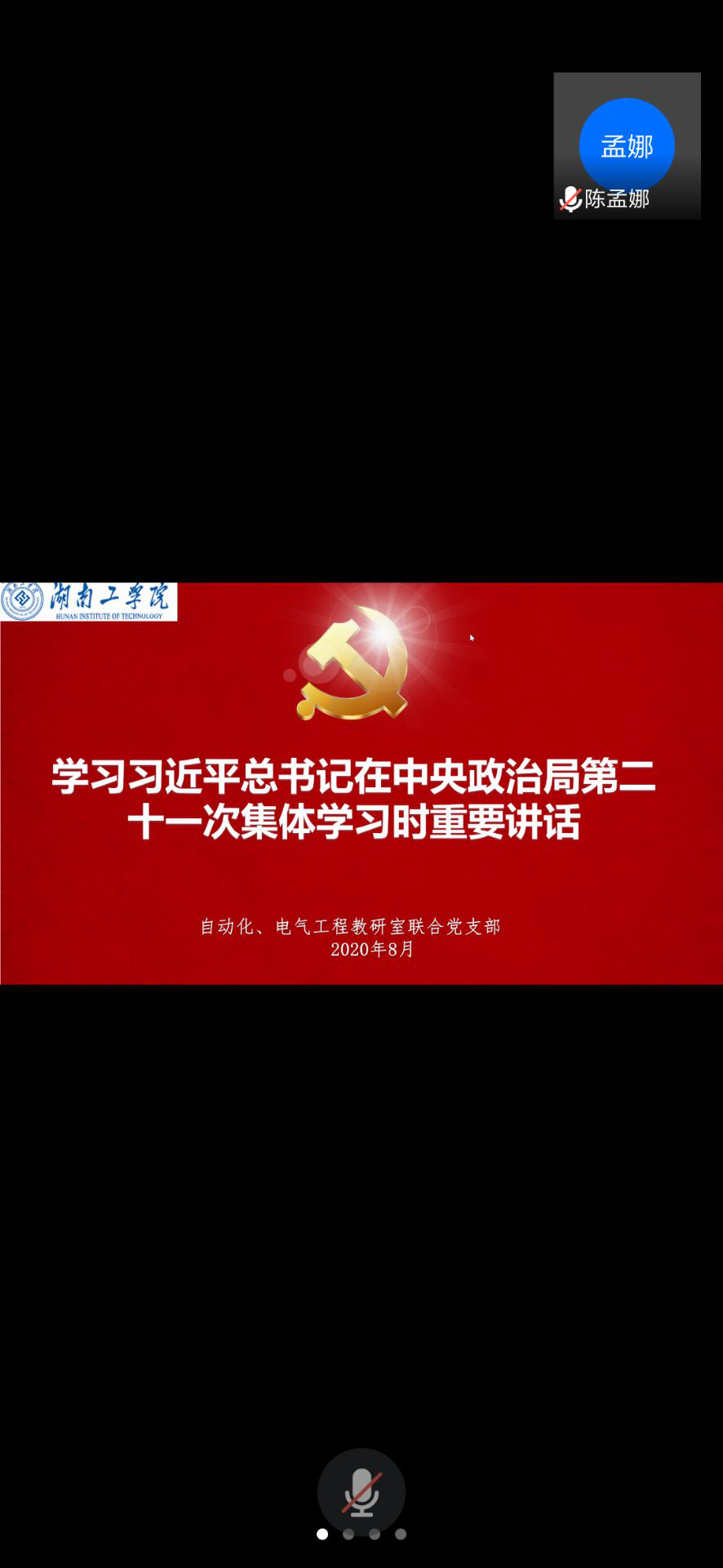 8月13日下午,自动化、电气工程教研室联合党支部开展主题党日活动,深入学习贯彻习近平总书记在中央政治局第二十一次集体学习时的重要讲话精神。电气与信息工程学院党委副书记李治军、党委委员/自动化、电气工程教研室联合党支部支部书记董海兵以及全体自动化、电气工程教研室联合党支部党员参加此次会议。会议由支部宣传委员/纪检委员黄勇飞主持。