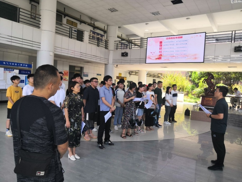 根据省教育厅《关于开展“大家访、大排查、大整治”教育安全集中攻坚行动的通知》要求和学校“安全信访维稳工作会议”精神,为全面准确的发现学生宿舍安全、管理、卫生等方面问题,电气与信息工程院、保卫处于2021年6月24日下午联合开展学生宿舍安全大检查。本次检查由电信学院党委副书记李治军、保卫处副处长马福兴带队,电信学院学工办主任阳柯、分团委书记黄馨仪、全体辅导员老师以及20余名学生干部参加。