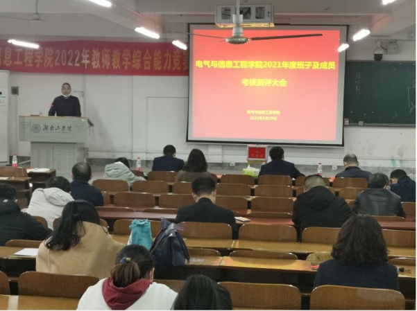 校党委委员、副校长黄红卫充分肯定了2021年电信学院全体干部和教职工的辛勤付出及取得的成绩,就做好此次述职测评工作,他强调,一是要统一思想、提高政治站位,充分认清干部考核的重要意义。二是要客观公正、实事求是,认真做好干部述职和民主测评,全体教职工要以对组织负责、对同志负责、对自己负责的态度,正确行使自己的民主权利,既不夸大成绩,也不回避问题,真实客观的对学院每名领导干部做出理性的评价。三是要正确对待测评结果,学院每位干部要以坦荡的胸襟正确对待群众的评价,对群众的赞扬要不骄不躁,对群众的批评要有则改之无则加勉,要把群众的评价作为自己前进的动力。他还勉励大家站在新的发展起点,过去和未来接替承续,机遇与挑战并存同行。面对2022新的发展任务,面对“十四五”的奋斗目标,我们要保持发展定力,自觉提升自身各方面的能力和水平,团结一心,坚定凝心聚力谋发展的决心不动摇,为再谱新篇,再创辉煌而努力奋斗。