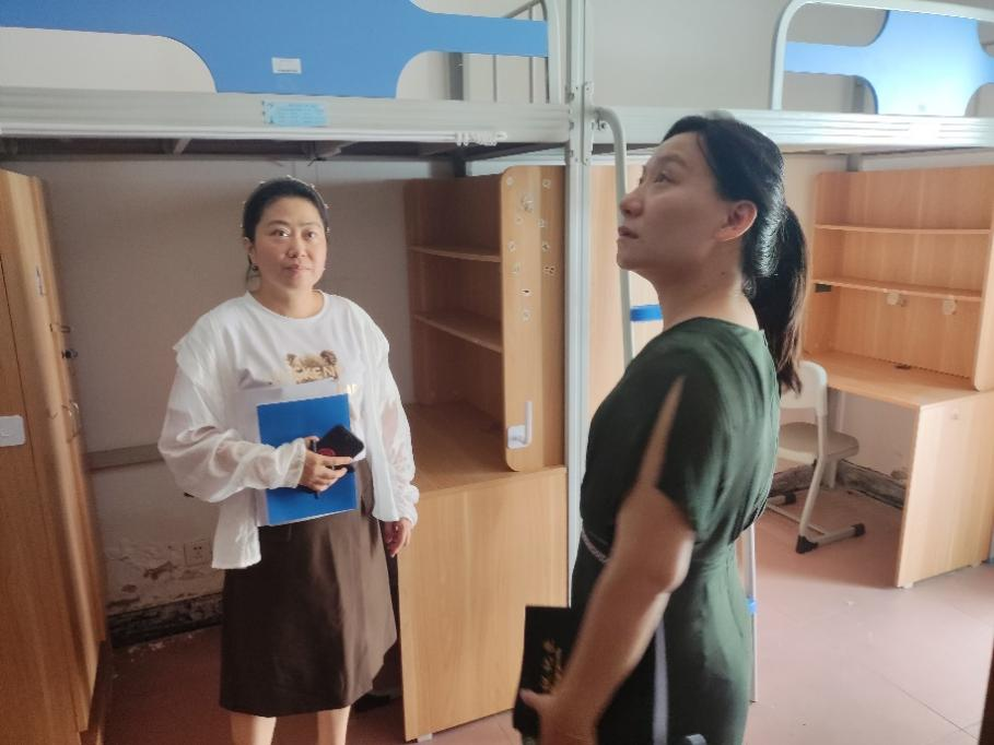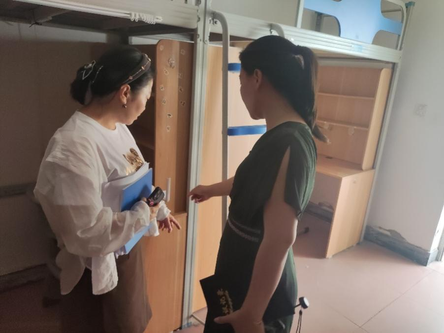 喻霞和周艳红对新生宿舍进行了全覆盖检查,认真察看水电使用安全,排查宿舍安全隐患,并仔细检查了床铺、衣柜、书桌等基本家具的完好程度与实用性,以及热水器、网络设施等生活设备的运行状况,发现问题及时记录和反馈,并就检查中发现的细节问题提出了整改意见,为迎接2024级新生“到家”做好充分准备。
